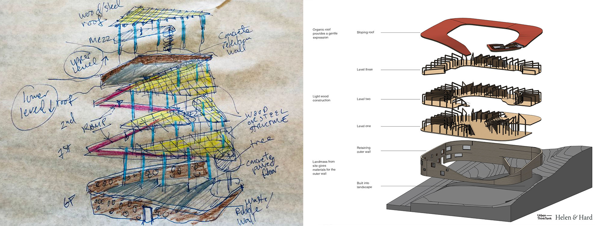 The conceptual design was developed by UTT and Helen&Hard, and prioritises a sense of Embrace for all those protected by the facility, without becoming closed off to the rest of the surrounding community.